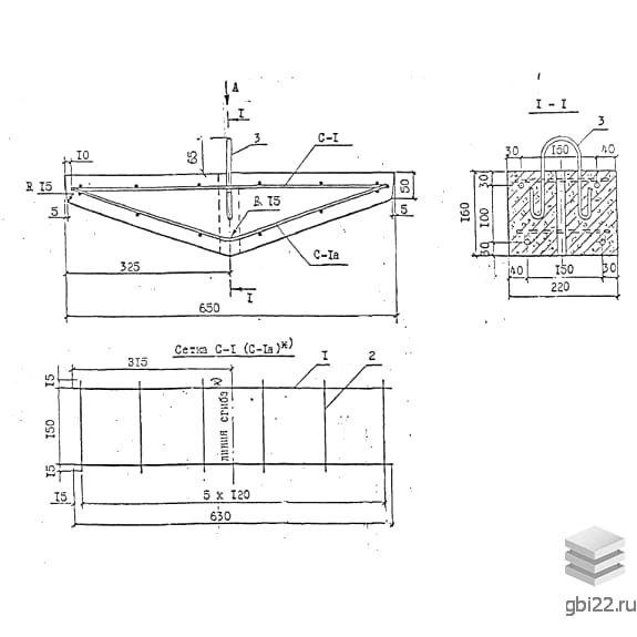 Анкер треугольной формы с прямоугольным сечением. Оснащен монтажной петлей для тросовых оттяжек. Изготовлен из бетона класса В25 (М350) с армированием стальными сетками.