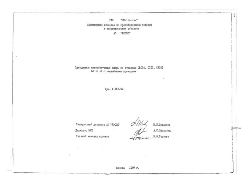 | Название стандарта | Одноцепные железобетонные опоры со стойками СВ 110, С 112, СВ 105 ВЛ 10 кВ с защищенными проводами. |