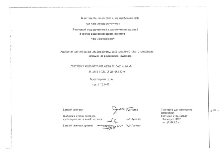 | Название стандарта | Одноцепные железобетонные опоры ВЛ 6 - 10 и 20 кВ на базе стоек СВ110-1(2,3)-а. |