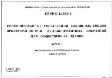 | Название стандарта | Унифицированные конструкции волнистых сводов пролетами до 42 м из армоцементных элементов для общественных зданий. |
