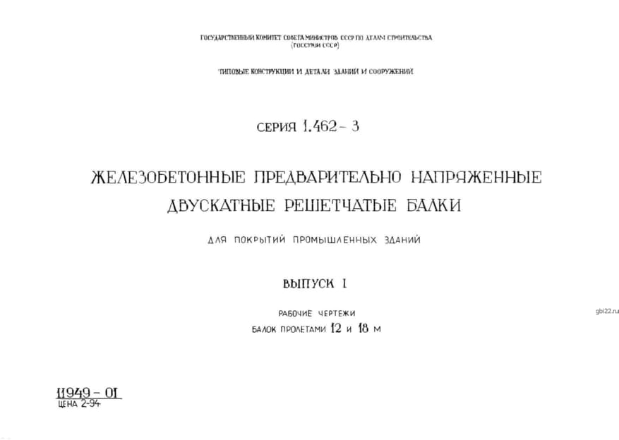 | Название стандарта | Железобетонные предварительно напряженные двускатные решетчатые балки для покрытий промышленных зданий. |