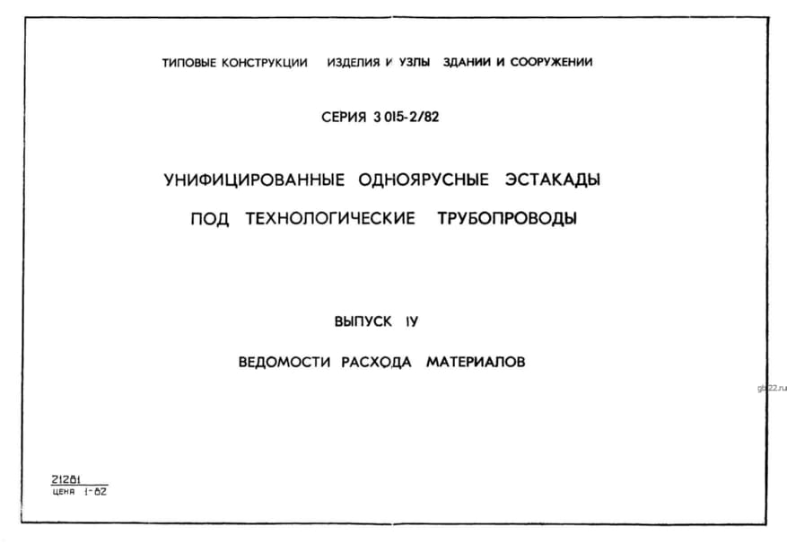 | Название стандарта | Унифицированные одноярусные эстакады под технологические трубопроводы. |