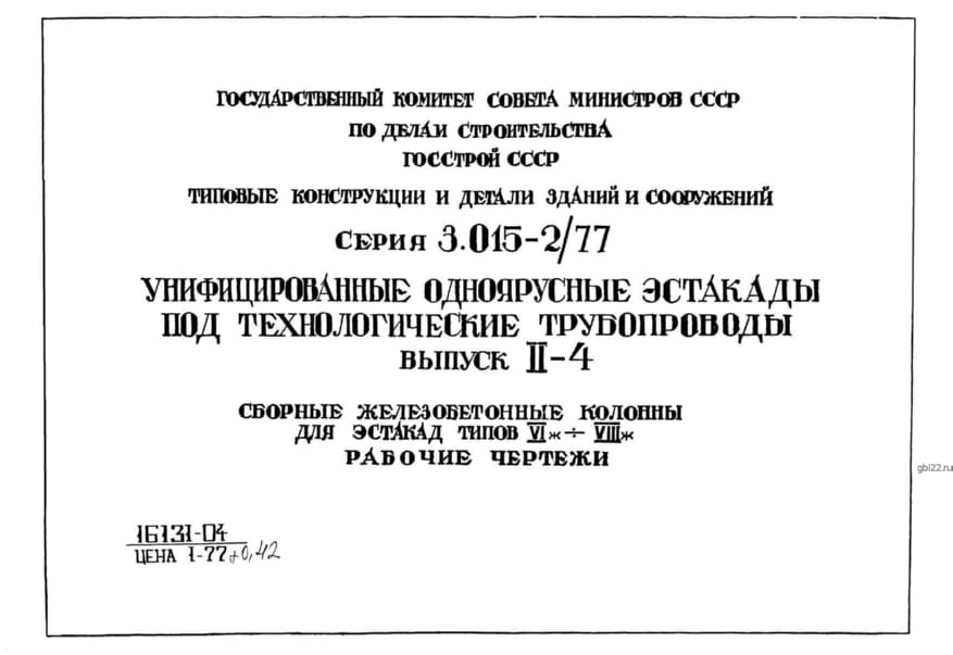 | Название стандарта | Унифицированные одноярусные эстакады под технологические трубопроводы. |