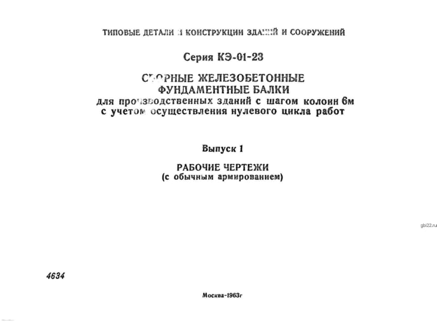 | Название стандарта | Сборные железобетонные фундаментные балки для производственных зданий с шагом колонн 6 м с учетом осуществления нулевого цикла работ. |