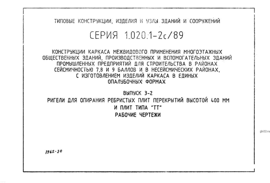 | Название стандарта | Конструкции каркаса межвидового применения многоэтажных общественных зданий, производственных и вспомогательных зданий промышленных предприятий для строительства в районах сейсмичностью 7, 8, 9 баллов и в несейсмических районах с изготовлением изделий кар |