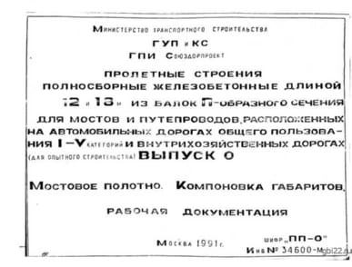 | Название стандарта | Пролетные строения полносборные железобетонные длиной 12 и 18 м из балок П-образного сечения для мостов и путепроводов. расположенных на автомобильных дорогах общего пользования I-V категорий и внутрихозяйственных дорогах (для опытного строительства). |