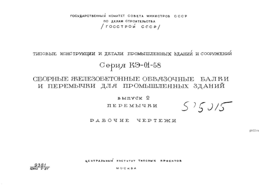 | Название стандарта | Сборные железобетонные обвязочные балки и перемычки для промышленных зданий. |