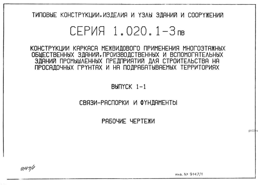 | Название стандарта | Конструкции каркаса межвидового применения многоэтажных общественных зданий производственных и вспомогательных зданий промышленных предприятий для строительства на просадочных грунтах и на подрабатываемых территориях. |