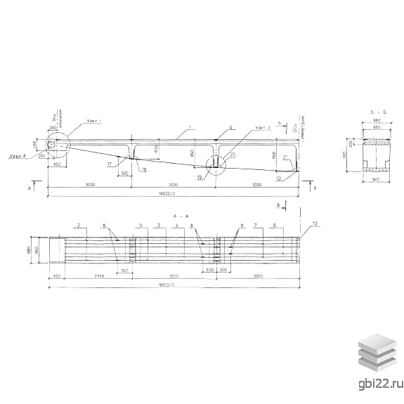 Плитно-шпренгельные балки БПШ 18-3 (ИНВ 32255м) представляют собой удлиненные элементы - фермы, имеющие при продольном сечении выступы, которые увеличиваются по длине к центру и соединены полукруглой монолитной дугой.