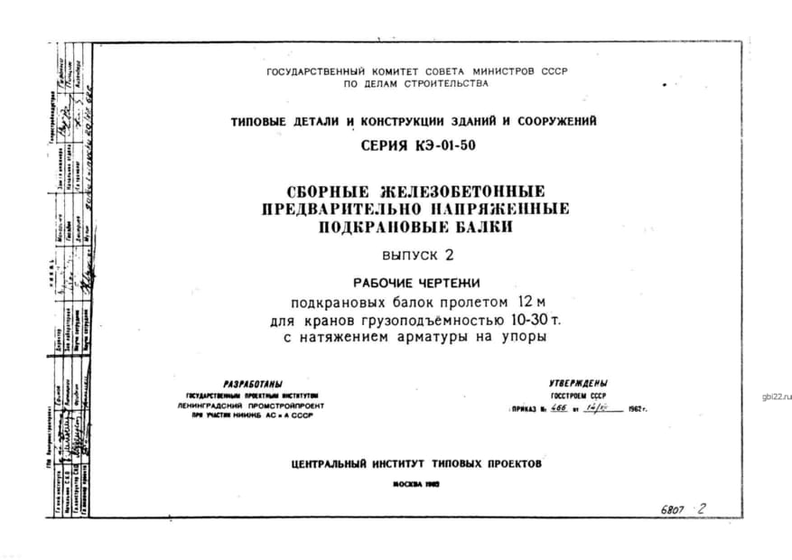 | Название стандарта | Сборные железобетонные предварительно напряженные подкрановые балки. |
