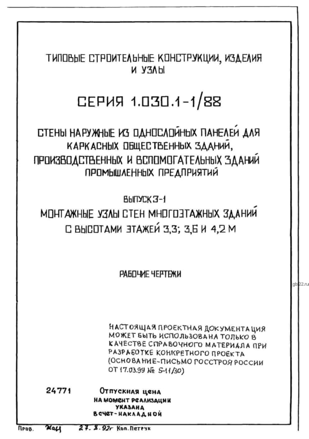 | Название стандарта | Стены наружные из однослойных панелей для каркасных общественных зданий, производственных и вспомогательных зданий промышленных предприятий. |