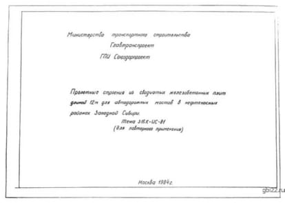 | Название стандарта | Пролетные строения из сводчатых железобетонных плит длиной 12м для автодорожных мостов в нефтеносных районах Западной Сибири. |