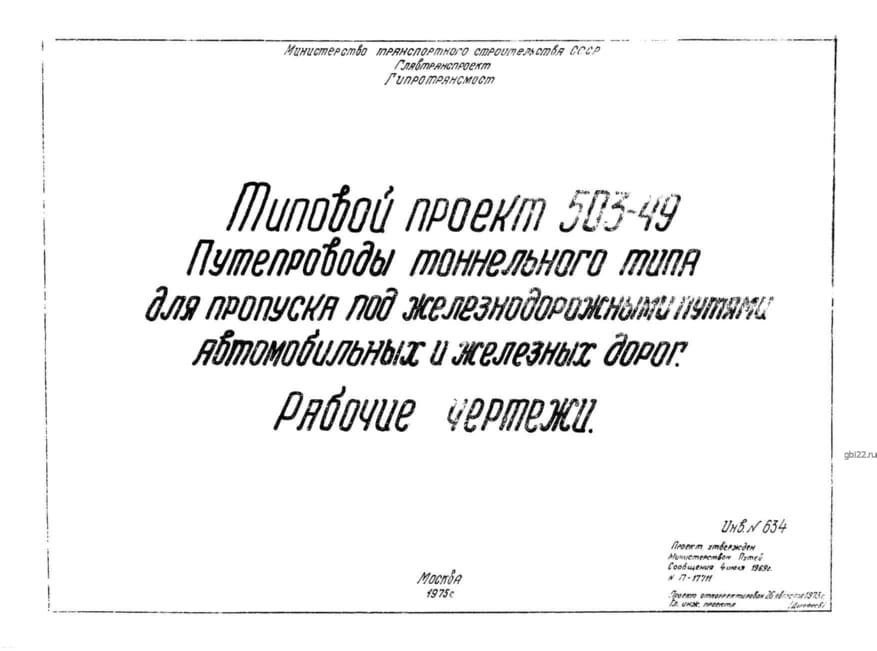 | Название стандарта | Путепроводы тоннельного типа для пропуска под железнодорожными путями автомобильных и железных дорог. Рабочие чертежи. |