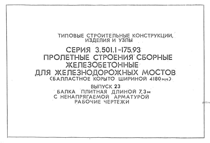 | Название стандарта | Пролетные строения сборные железобетонные для железнодорожных мостов (балластное корыто шириной 4180 мм). |