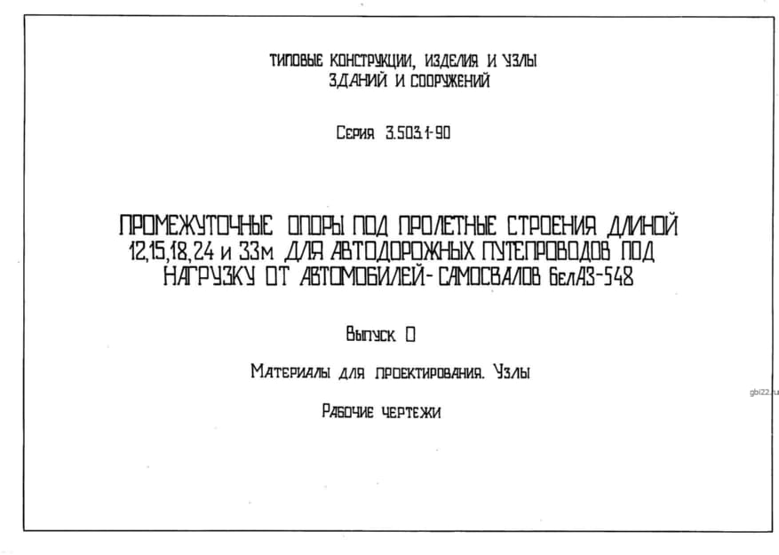 | Название стандарта | Промежуточные опоры под пролетные строения длиной 12, 15, 18, 24 и 33 м для автодорожных путепроводов под нагрузку от автомобилей-самосвалов БелАЗ-548. |