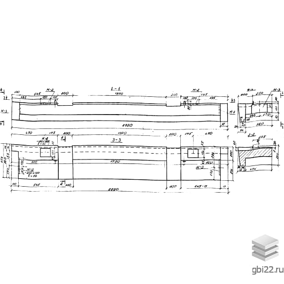 Карнизные блоки БКн (ИНВ 28900м) представляют собой высокопрочные железобетонные строительные элементы. Они имеют прямоугольную форму с «Г»-образным поперечным сечением и оснащены конструкционными выступами и углублениями. Эти изделия включают закладные детали, предназначенные для соединения с соседними элементами в рамках общего проекта.