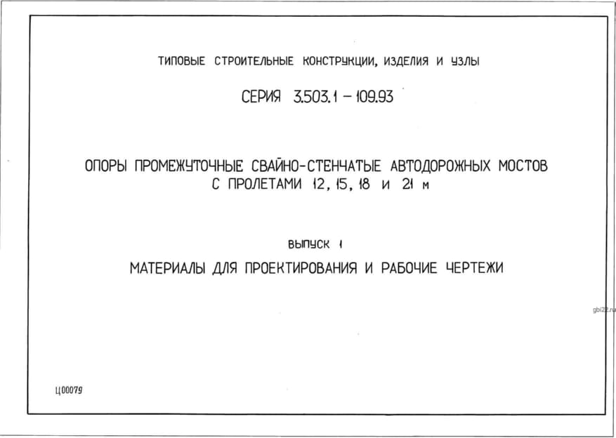 | Название стандарта | Опоры промежуточные свайностенчатые автодорожных мостов с пролетами 12, 15, 18 и 21 м. |
