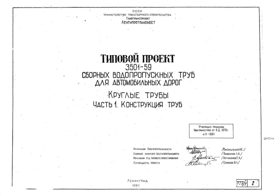 | Название стандарта | Типовой проект сборных водопропускных труб для автомобильных дорог. Круглые трубы. |
