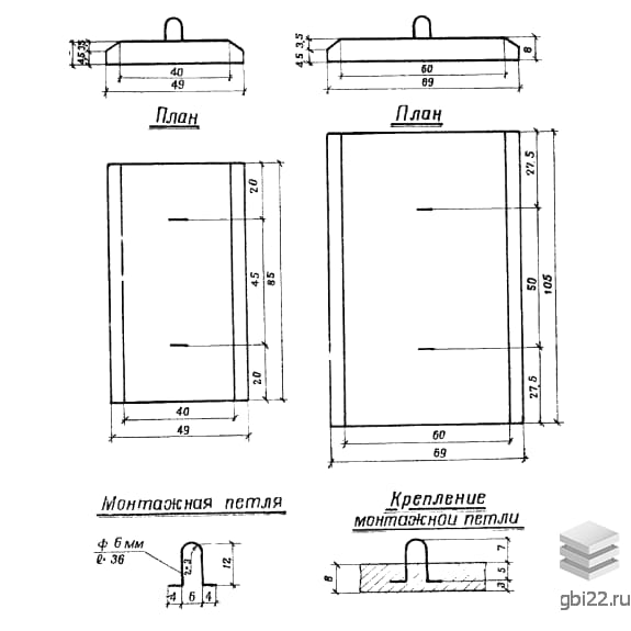 Блоки изготавливаются из тяжелого бетона с армированием стальными каркасами (класс стали А-100 по ГОСТ 5781-82). Для монтажа предусмотрена строповочная петля ПС-1.