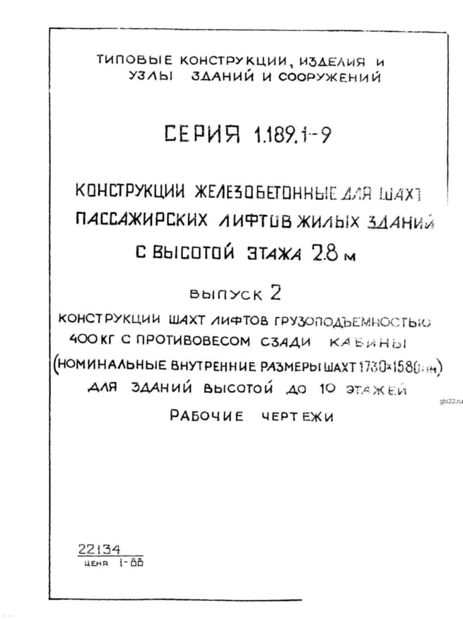 | Название стандарта | Конструкции железобетонные для шахт пассажирских лифтов жилых зданий с высотой этажа 2,8 м. |