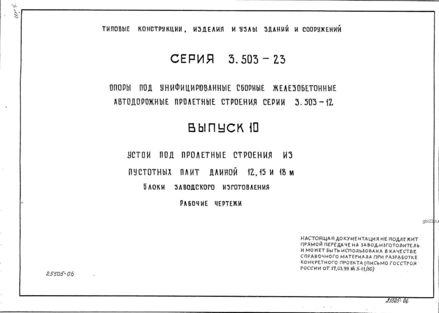 | Название стандарта | Опоры под унифицированные сборные железобетонные автодорожные пролетные строения серии 3.503-12. |