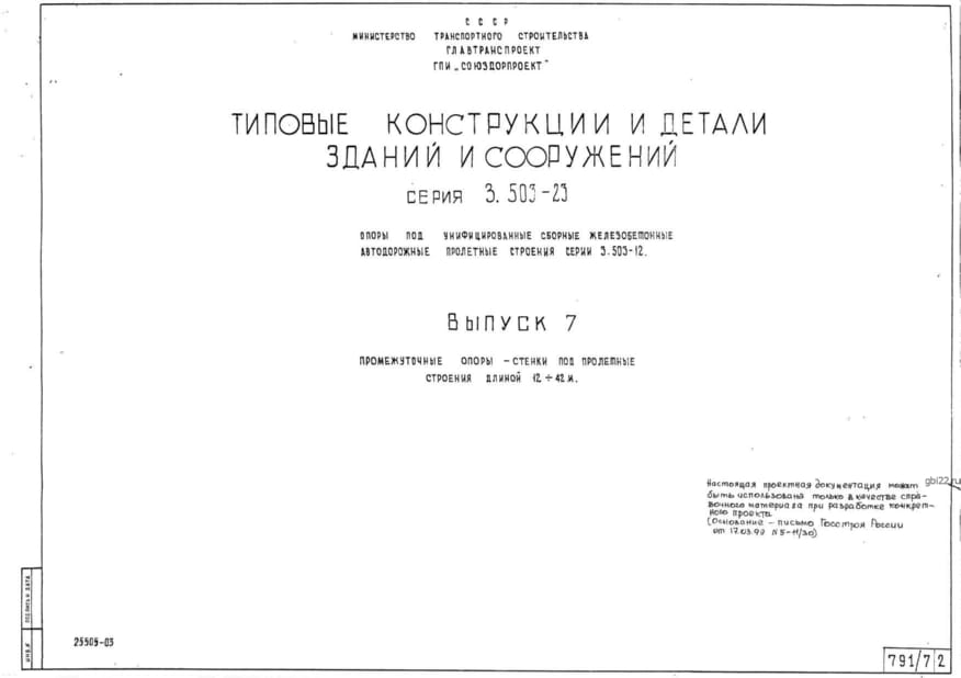| Название стандарта | Опоры под унифицированные сборные железобетонные автодорожные пролетные строения серии 3.503-12. |