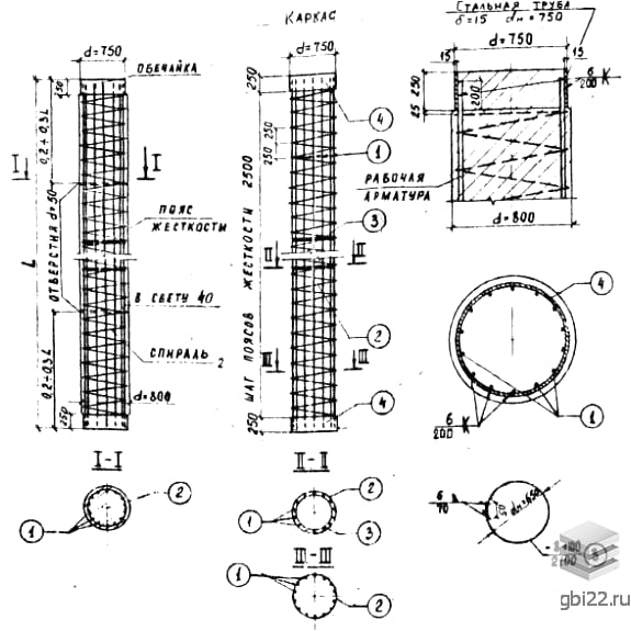 Конструкции армируются отдельными стержнями, которые соединяются с помощью контактной точечной сварки и хомутов, наматываемых по спирали. Для распределительного армирования используется сталь класса AI марок ВСт3пс2, соответствующая требованиям ГОСТ 5781-75. Рабочее армирование выполняется из стали класса AII марки 10ГТ диаметром от 10 до 32 мм, а также сталь класса AIII марки 25Г2С диаметром стержней от 8 до 32 мм.