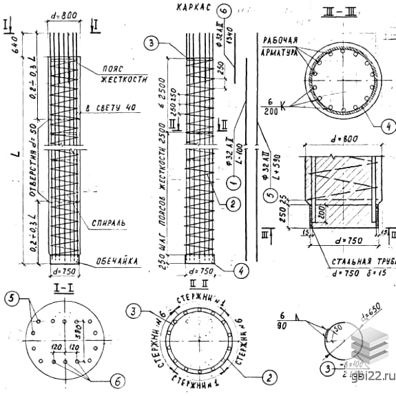 Изделия имеют вытянутую цилиндрическую форму и гладкие поверхности. Для их производства применяются стальные опалубки, которые обеспечивают точность геометрических пропорций и высокое качество лицевых поверхностей. Рекомендуется использовать тяжелый бетон марки М400 с морозостойкостью не ниже F300.