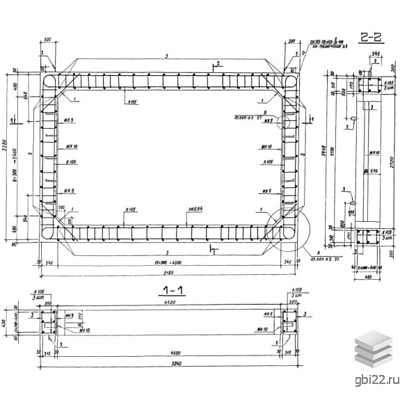 Армирование блоков БГВ IV 4,5-2,7 выполняется пространственным каркасом, собранным из плоских каркасов. Рабочая и поперечная арматура изготовлены из горячекатаной стали класса A-III. В блоках предусмотрены закладные детали, упрощающие процессы соединения изделий и крепления оборудования.