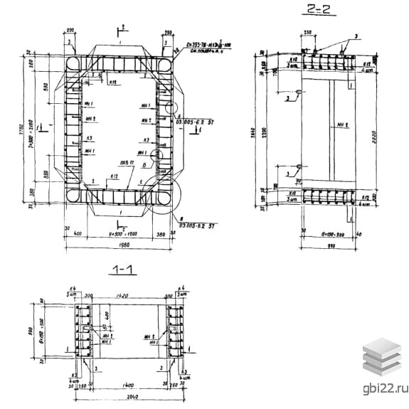 Армирование блоков выполняется с использованием пространственного каркаса, собранного из плоских каркасов. Рабочая и поперечная арматура изготовлены из горячекатаной стали класса A-III. В блоках предусмотрены закладные детали, упрощающие процессы соединения изделий и крепления оборудования. Для удобства погрузочно-разгрузочных работ блоки оснащаются монтажными петлями из арматурной стали класса A-I.