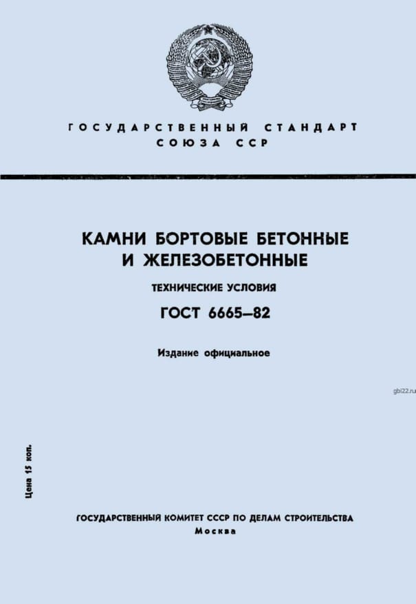 | Название стандарта | Камни бортовые бетонные и железобетонные. Технические условия. |