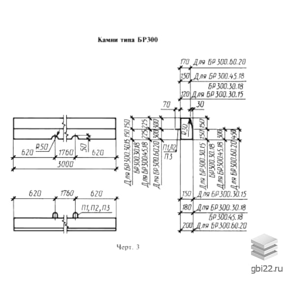 На поверхности каждого железобетонного изделия имеется маркировочная надпись, которая включает буквы и цифры. В соответствии с ГОСТ 6665-82 расшифровка маркировки БР 300-60-20 выглядит следующим образом: