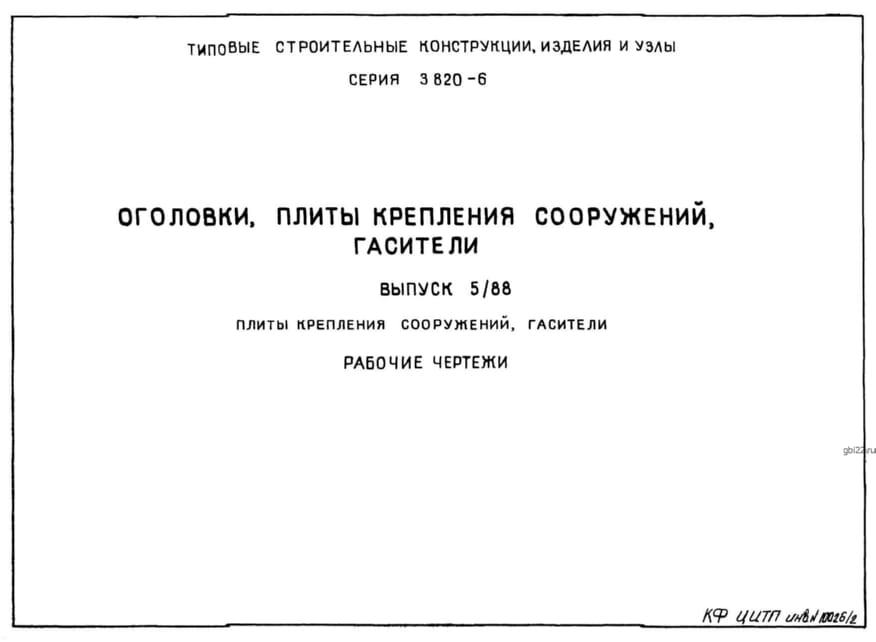 | Название стандарта | Оголовки, плиты крепления сооружений, гасители. |