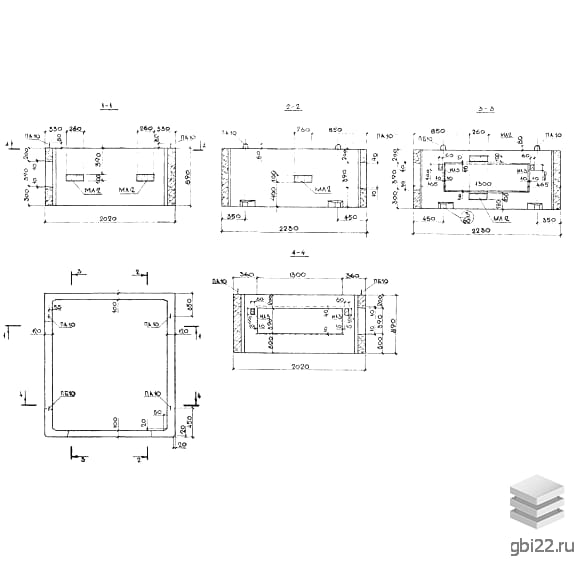 Армирование выполняется стальными сетками из проволоки BpI и стержней AI. Для строповочных петель используется сталь ВСт3пс2/ВСт3сп2 (ГОСТ 380-71).