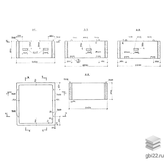 Блоки ШЛГ 50п-3 в1 представляют собой пустотелые бетонные конструкции с прямоугольными технологическими отверстиями на боковых поверхностях. Изделия выпускаются в двух вариантах: