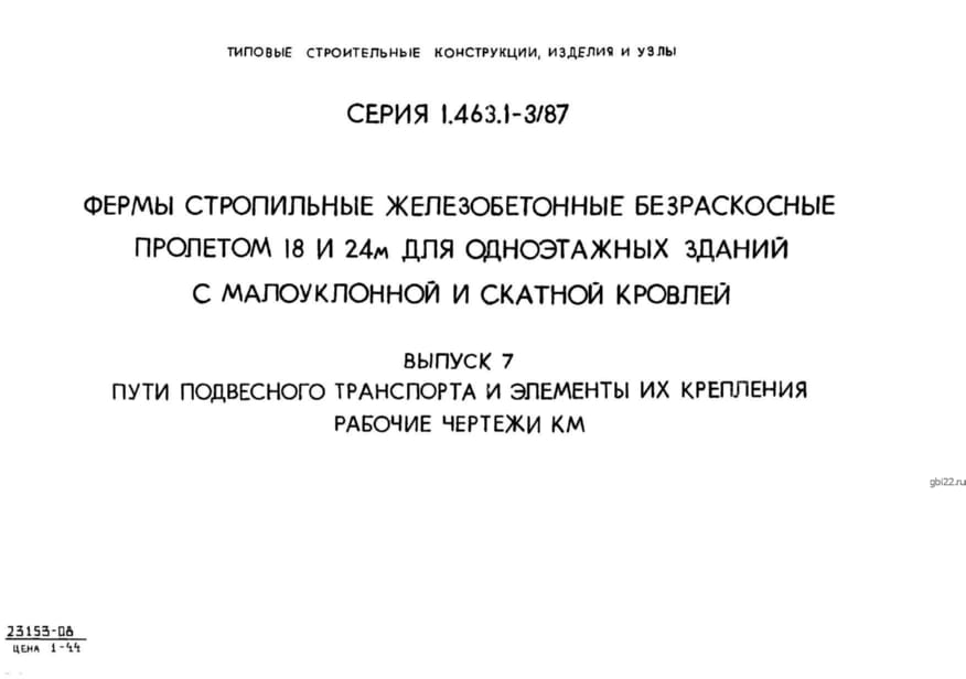 | Название стандарта | Фермы стропильные железобетонные безраскосные пролетом 18 и 24 м для одноэтажных зданий с малоуклонной и скатной кровлей. |
