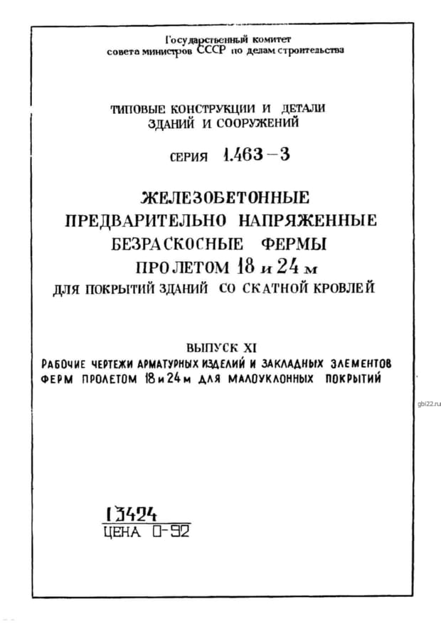 | Название стандарта | Железобетонные предварительно напряженные безраскосные фермы пролетом 18 и 24 м для покрытий зданий со скатной кровлей. |