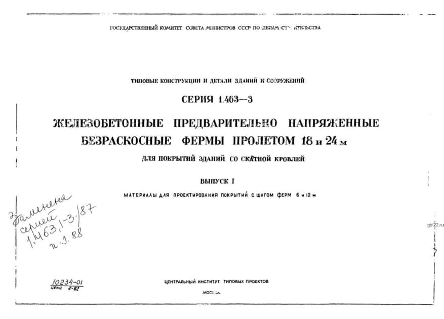 | Название стандарта | Железобетонные предварительно напряженные безраскосные фермы пролетом 18 и 24 м для покрытий зданий со скатной кровлей. |