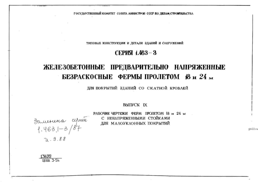 | Название стандарта | Железобетонные предварительно напряженные безраскосные фермы пролетом 18 и 24 м для покрытий зданий со скатной кровлей. |