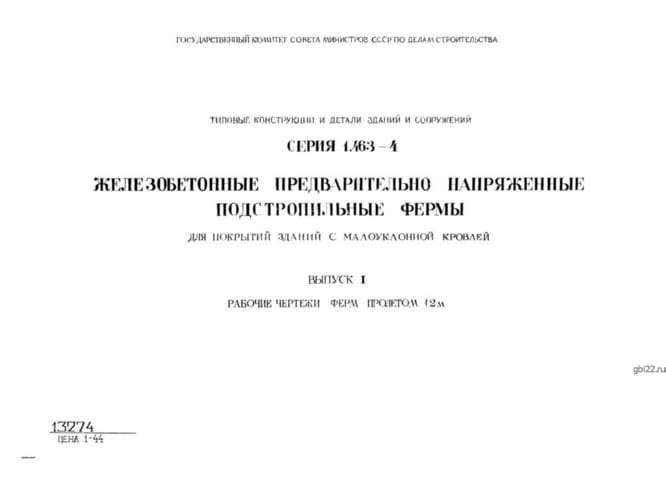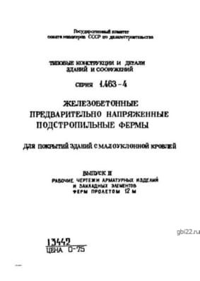 | Название стандарта | Железобетонные предварительно напряженные подстропильные фермы для покрытий зданий с малоуклонной кровлей. |
