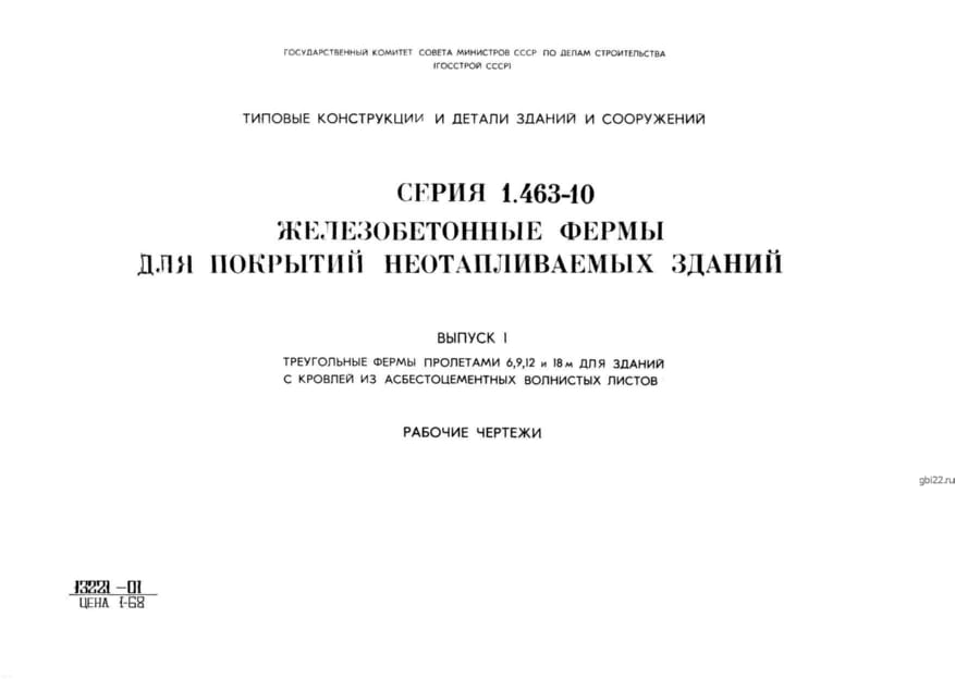 | Название стандарта | Железобетонные фермы для покрытий неотапливаемых зданий. |