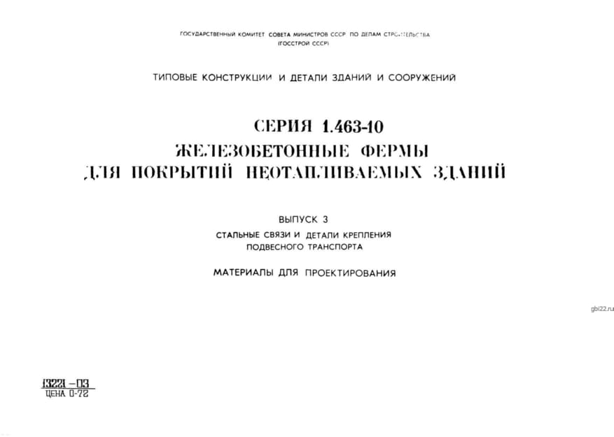 | Название стандарта | Железобетонные фермы для покрытий неотапливаемых зданий. |