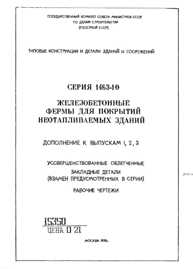 | Название стандарта | Железобетонные фермы для покрытий неотапливаемых зданий. |