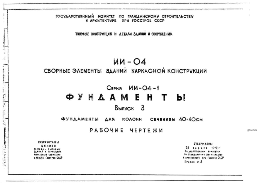| Название стандарта | Сборные элементы зданий каркасной конструкции. Фундаменты. |