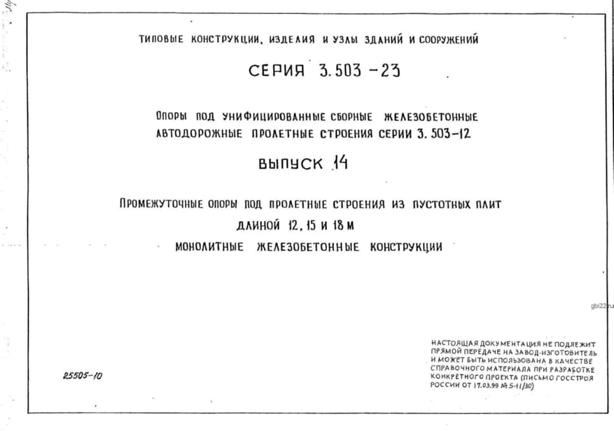 | Название стандарта | Опоры под унифицированные сборные железобетонные автодорожные пролетные строения серии 3.503-12. |