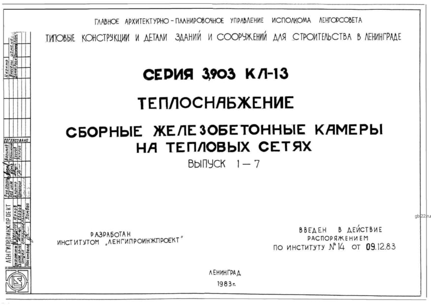 | Название стандарта | Теплоснабжение. Сборные железобетонные камеры на тепловых сетях. |