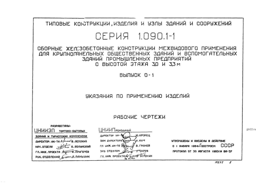 | Название стандарта | Сборные железобетонные конструкции межвидового применения для крупнопанельных общественных зданий и вспомогательных зданий промышленных предприятий с высотой этажей 3,0 и 3,3 м. |