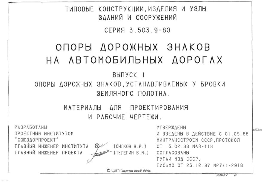 | Название стандарта | Опоры дорожных знаков на автомобильных дорогах. |
