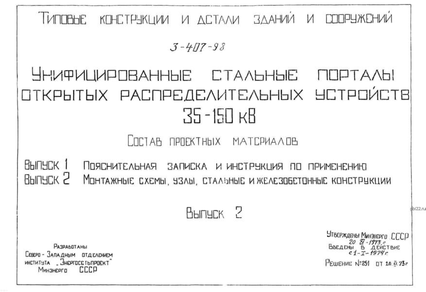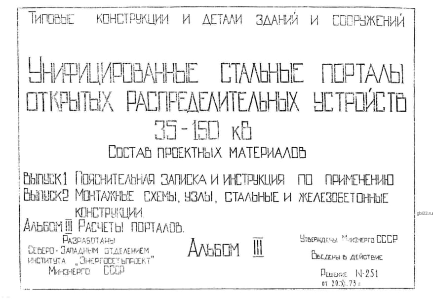 | Название стандарта | Унифицированные стальные порталы открытых распределительных устройств 35 - 150 кВ. |