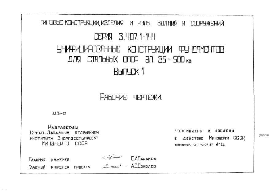 | Название стандарта | Унифицированные конструкции фундаментов для стальных опор ВЛ 35 - 500 кВ. |